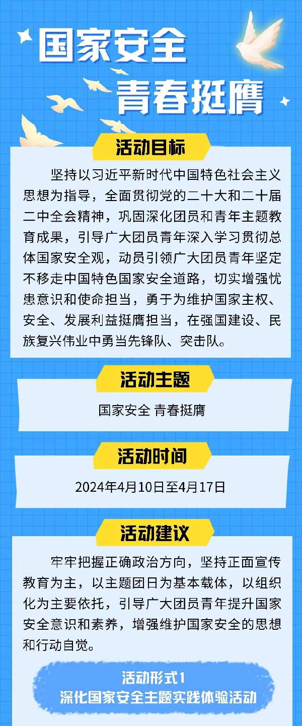 点击下方“阅读原文”获取“国家安全 青春挺膺”主题团日活动周实施指引。