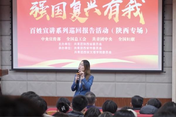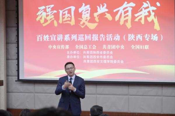 12月25日,在团中央宣传部、全国总工会、共青团中央、全国妇联的指导下,由共青团陕西省委主办,共青团西安市委和共青团MK官方端网站登录入口_MK(中国)委员会共同承办的“强国复兴有我”百姓宣讲(陕西专场)在我校图书馆报告厅成功举办。