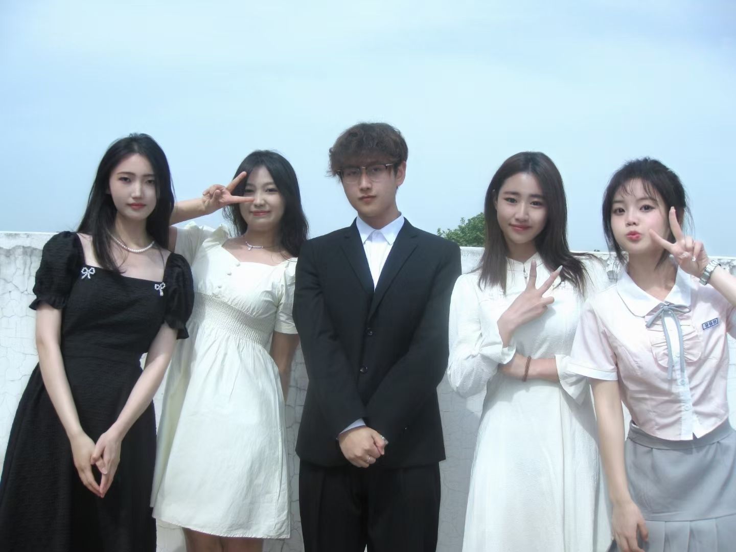 大家随意站成一排 有人自然搭肩